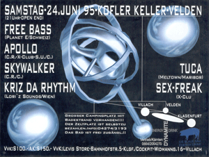 Carinthia Rave (010) / Kofler A-Velden / Summer 1995 Line up: Free Bass, Kriz da Rhythm, Tuca, Sex-Freak, Skywalker, Apollo
